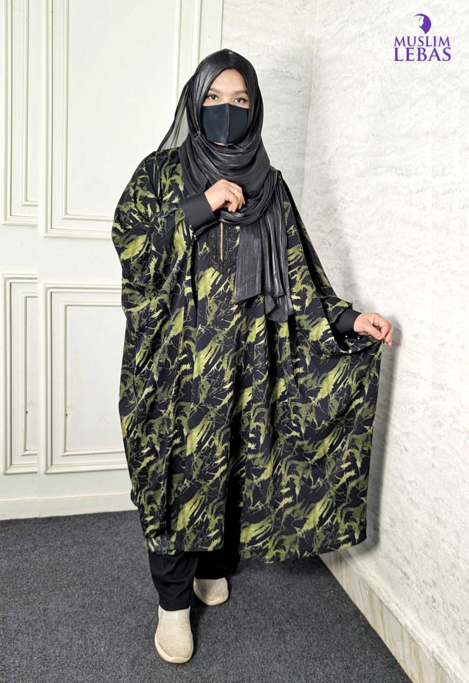 Olive Two Layer Chiffon Extra Long Khimar Hij...